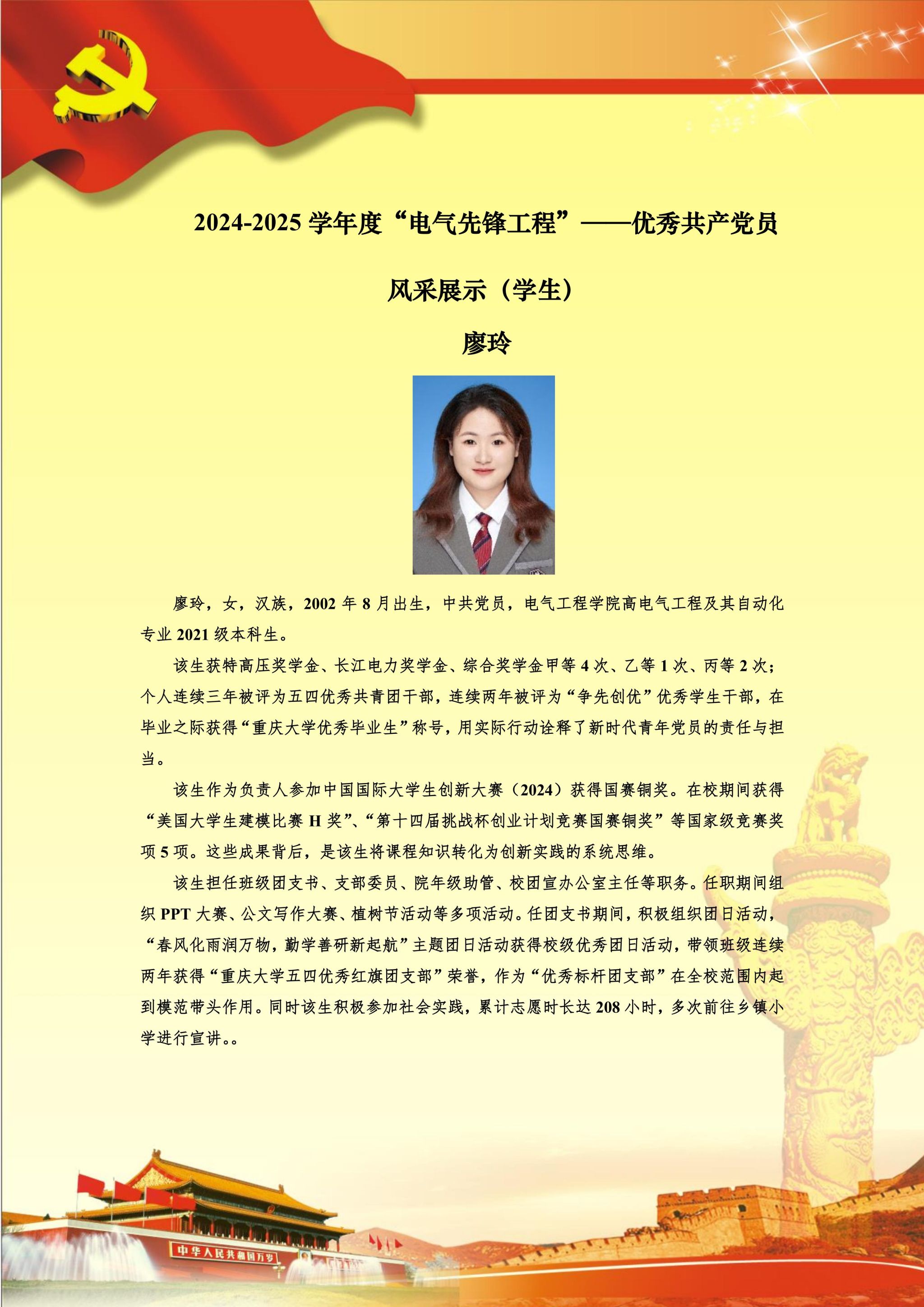 【党员风采】本科生三支部廖玲