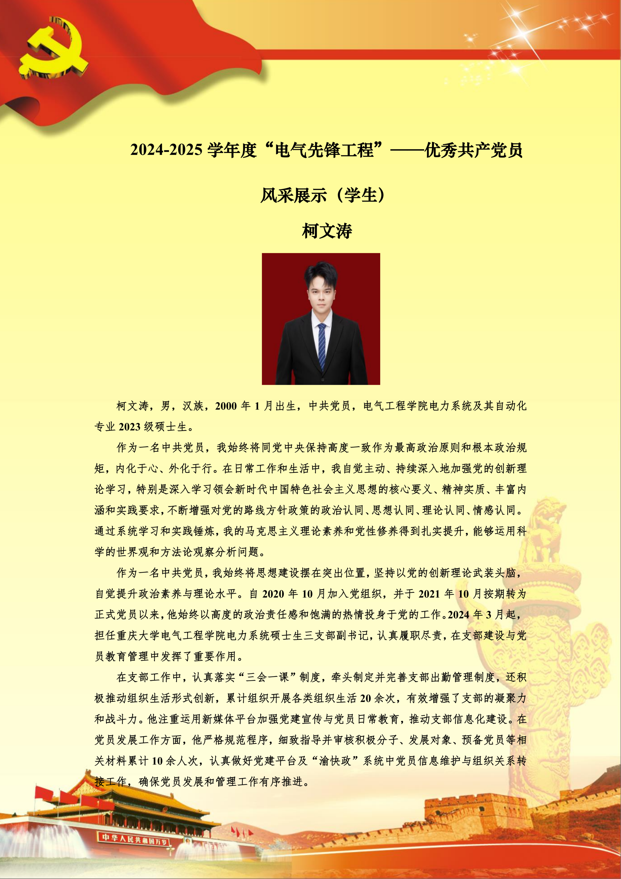 【党员风采】电力系统及其自动化硕士生三支部柯文涛