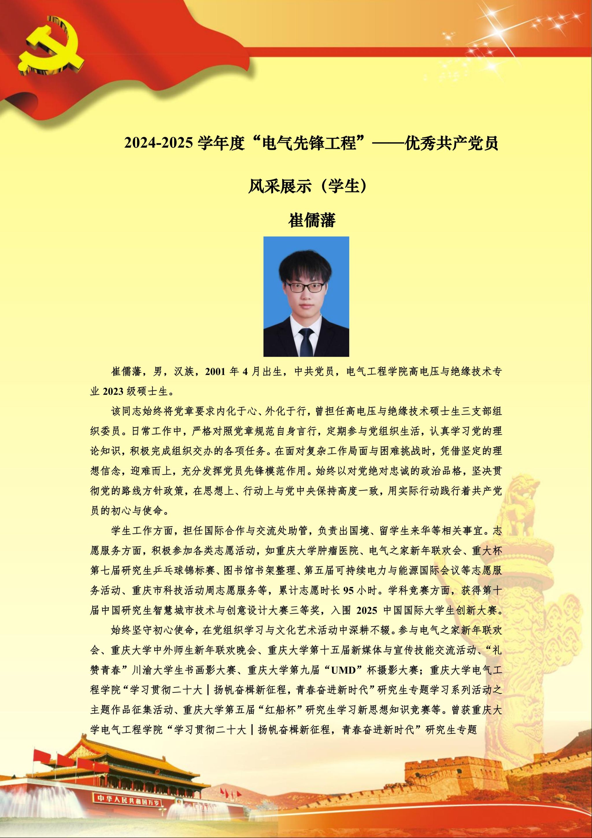 【党员风采】高电压与绝缘技术硕士生三支部崔儒藩