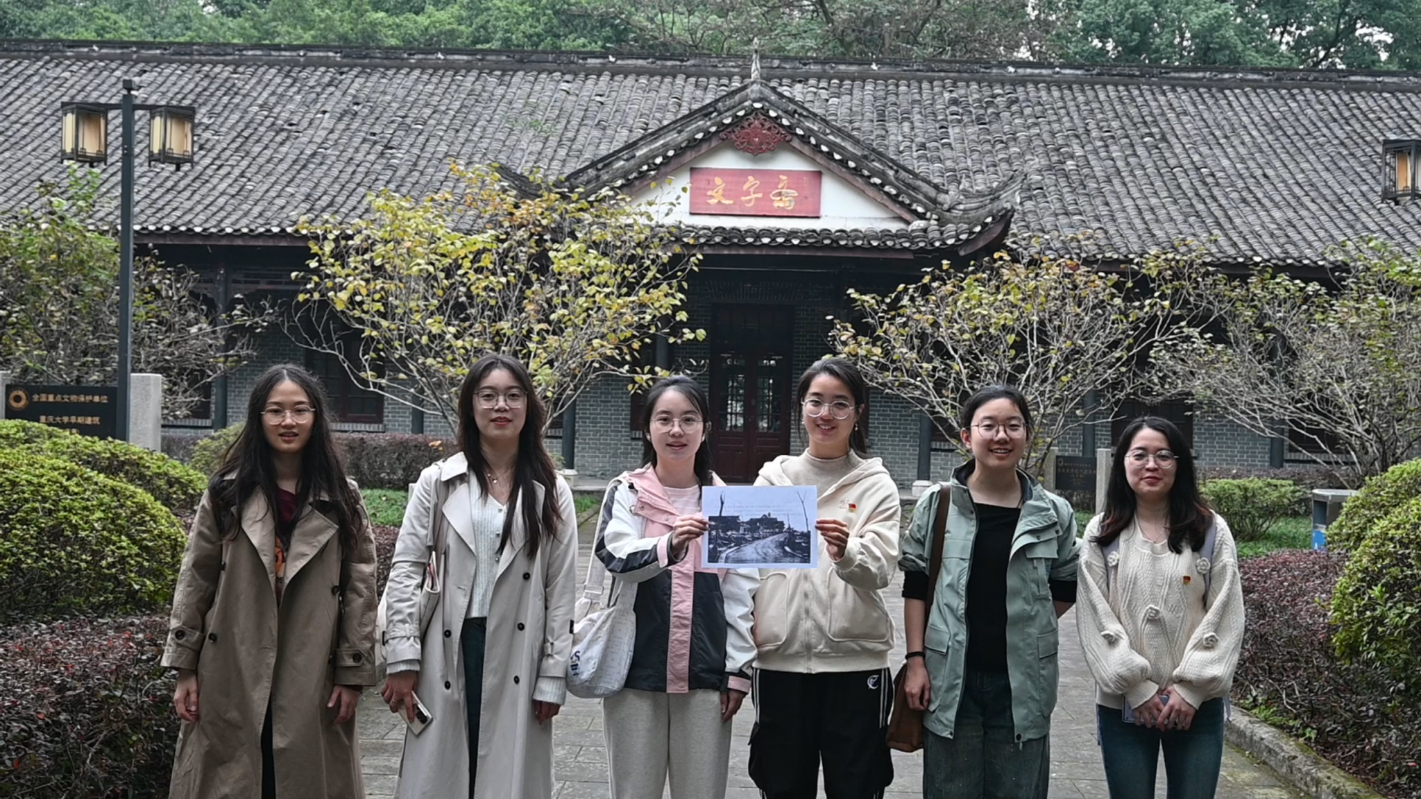 随后,各小组分头前往民主湖、高压试验厅、钟塔、文字斋等历史旧址,开展“老照片打卡述史”活动。党员们手持老照片,在现场录制讲解视频,重温校园变迁历程,感悟时代发展脉络。活动加深了大家对校史院情的理解,进一步激发了爱校荣院的归属感与责任感。