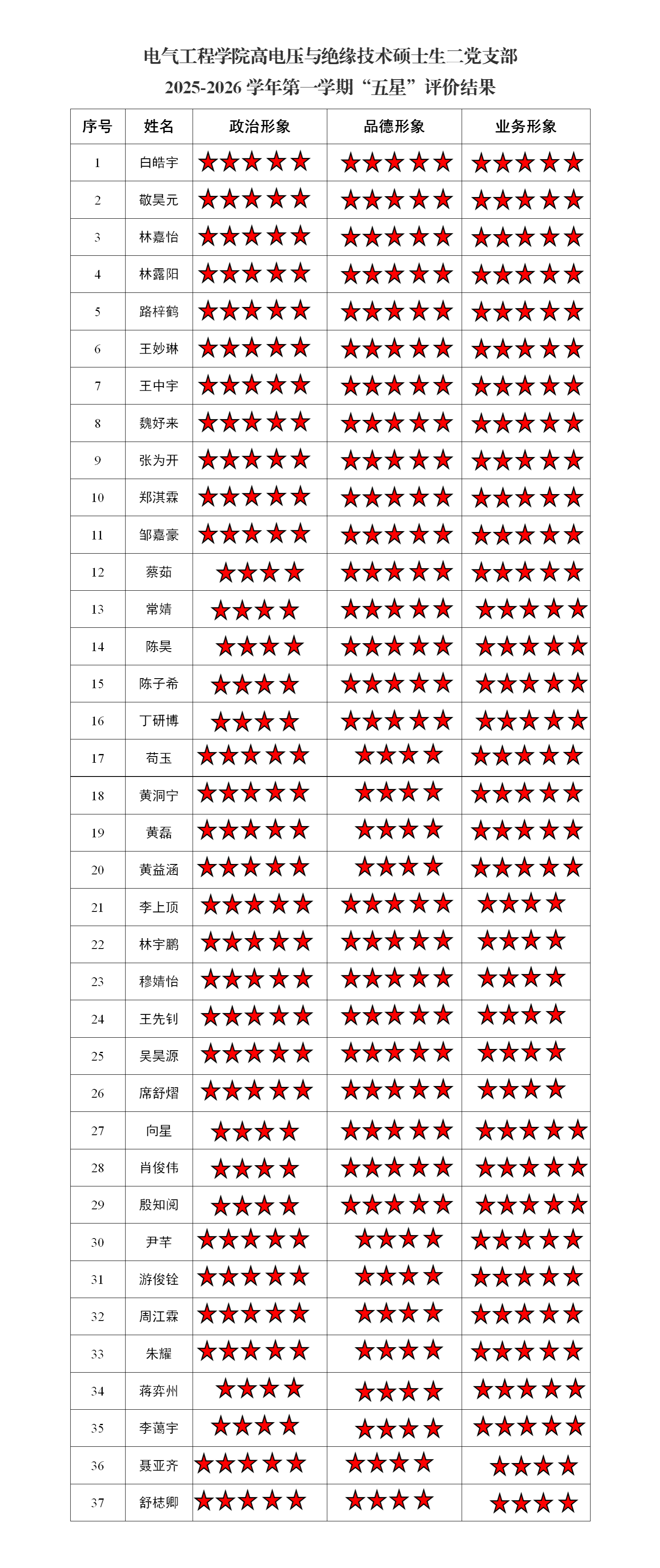 电气工程学院高电压与绝缘技术硕士生二党支部2025-2026学年第一学期“五星”评价结果