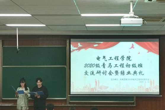 2021年6月10日下午2时,电气工程学院2020级青马工程初级班交流研讨会暨结业典礼于虎溪校区D1134教室顺利举行。电气工程学院团委书记喻惠、电气工程学院兼职辅导员符东莅临现场指导,学生会主席孙启明、学生会主席团成员冉晴月、虎溪负责人陈祉伶、王海纳出席会议。此次活动由钱伟荣和钟雯欣主持。