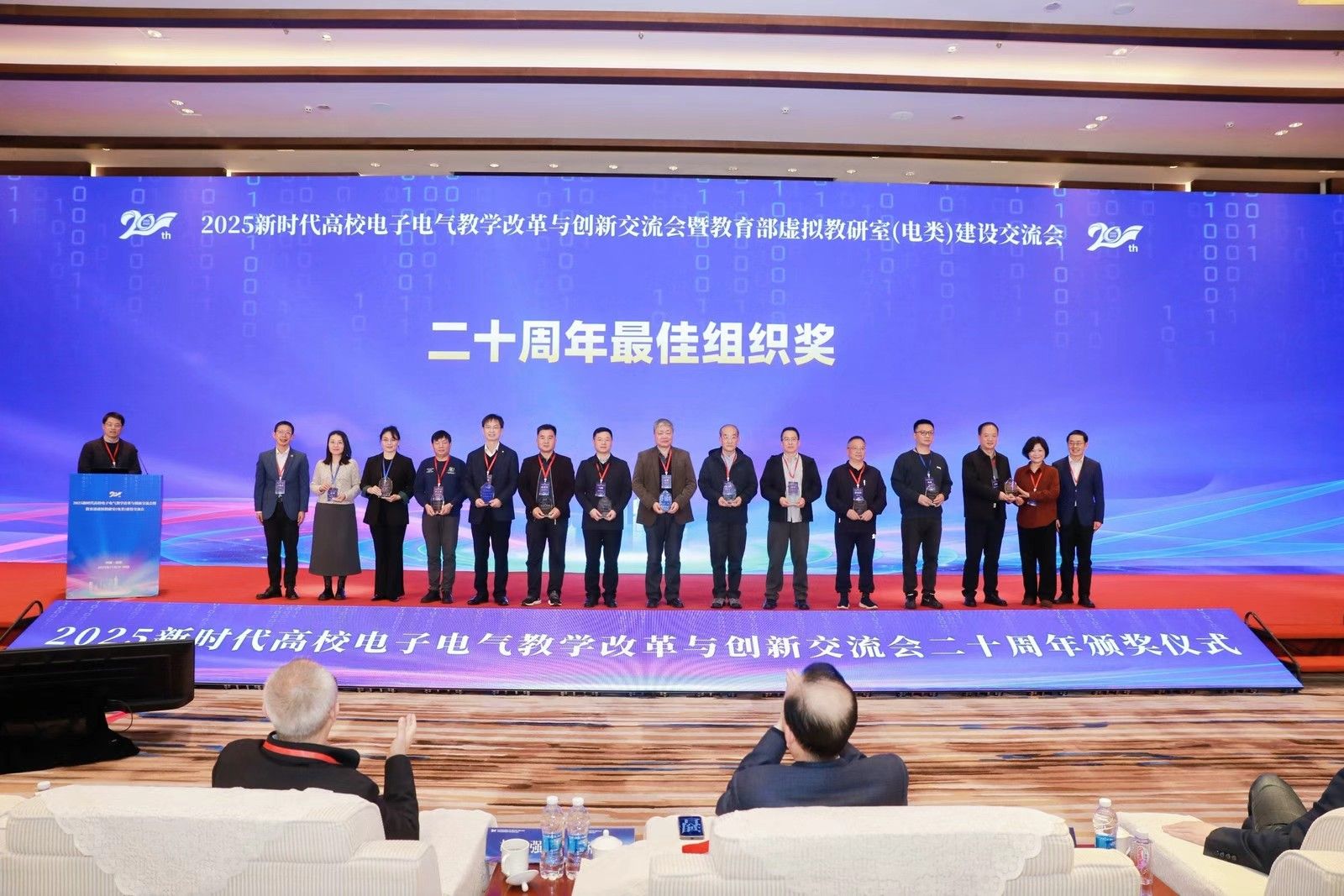 会上进行了“新时代高校电子电气教学改革与创新交流会二十周年颁奖仪式”。经组委会综合评审,侯世英教授荣获“二十周年最佳贡献奖”,以表彰其一直深耕高校电工学系列课程教学改革与虚拟教研室建设所做出的杰出贡献。