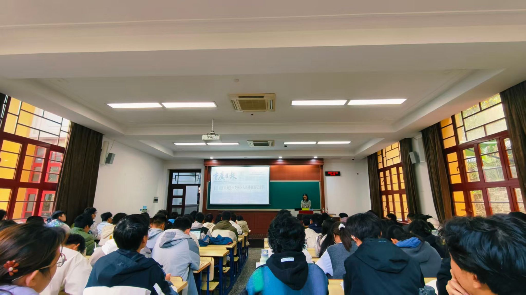 王晓静以税西恒、江泽佳等先辈的视频资料引入,系统回顾了从重庆大学工学院到电机系的创建历程,阐述了学科布局的初心与使命,并介绍了早期学生的课程设置、实践培养等情况。围绕电机系初创阶段,她重点讲述了第一任系主任税西恒克服各种艰难的办学经历,中国赴北极科考第一人、电机系第二任系主任冯简远征极地的科学探索,以及进步青年、电机系1947届电信组毕业生冯三义矢志报国的赤子情怀。这些鲜活故事生动诠释了一代代重大电气人赤心报国、艰苦奋斗的精神品格,深深打动了在场学生。
