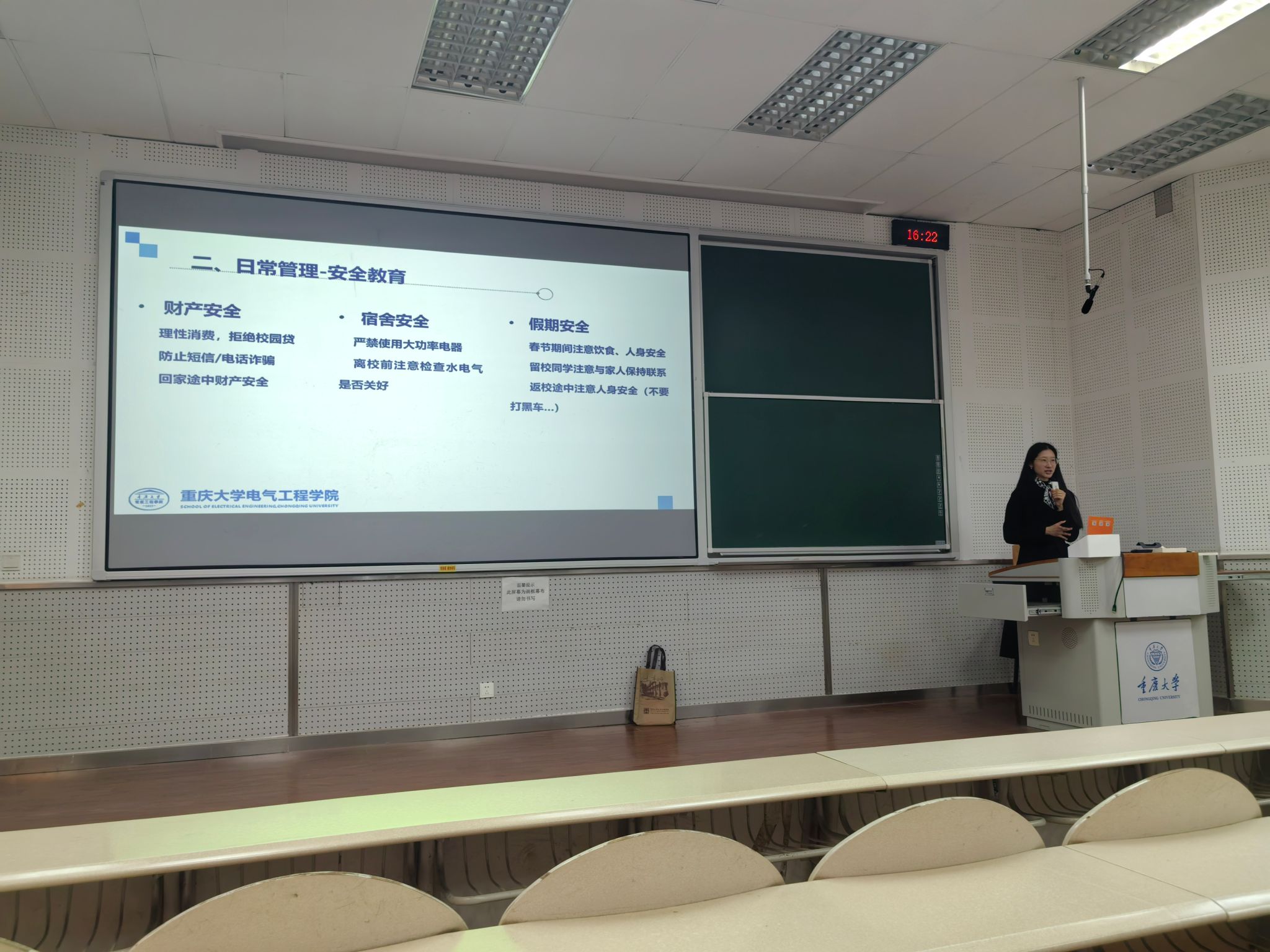 2026年1月14日下午,重庆大学电气工程学院本科2023级期末年级大会在科学城校区虎溪校园D1137教室举行,核心聚焦毕业规划、安全教育、学业要求三大重点。2023级辅导员胡力方、2023级兼职辅导员以及2023级全体本科生参加本次年级大会,会议由胡力方主持。