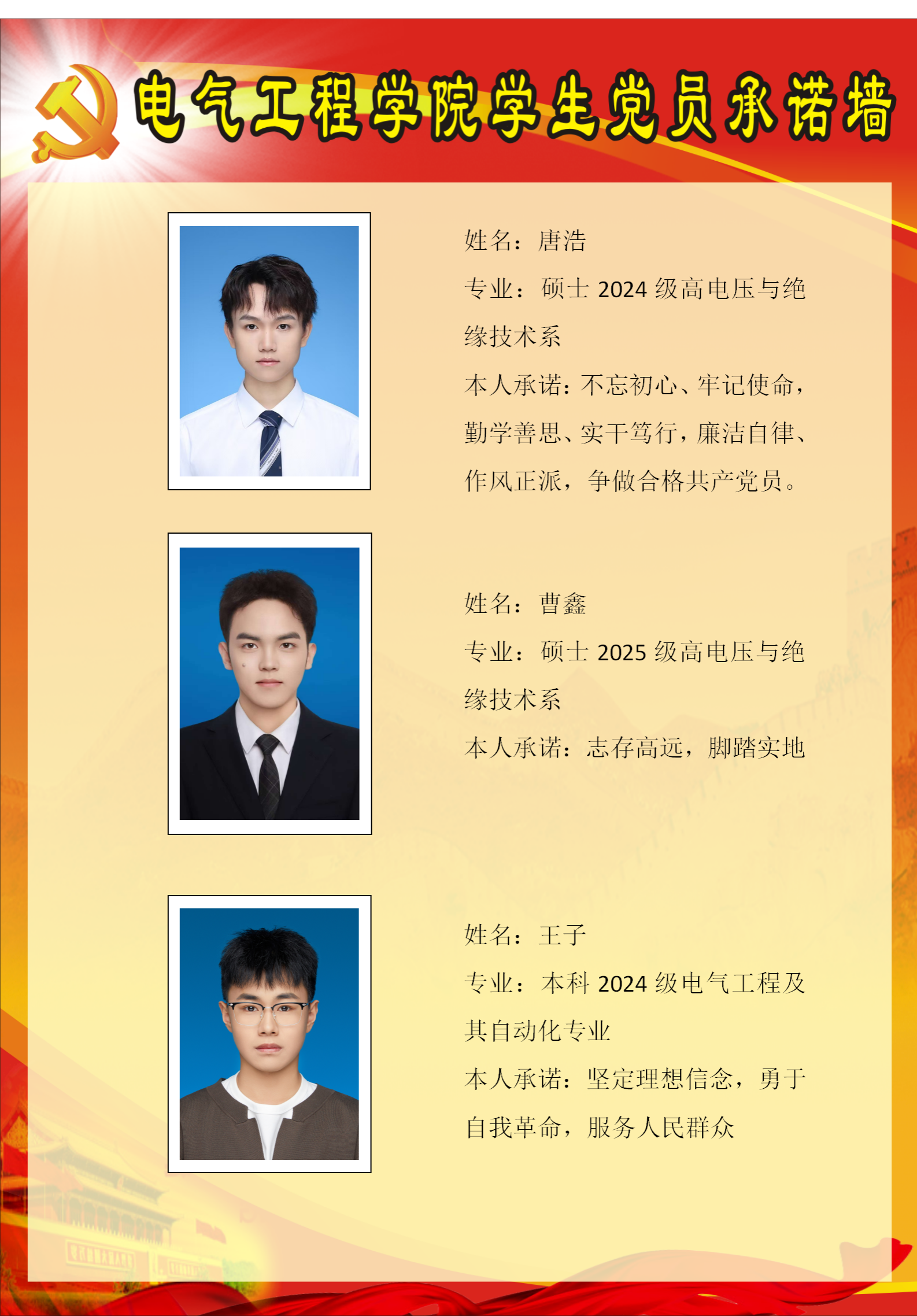 【党员示范领航行动】本科生一支部党员承诺