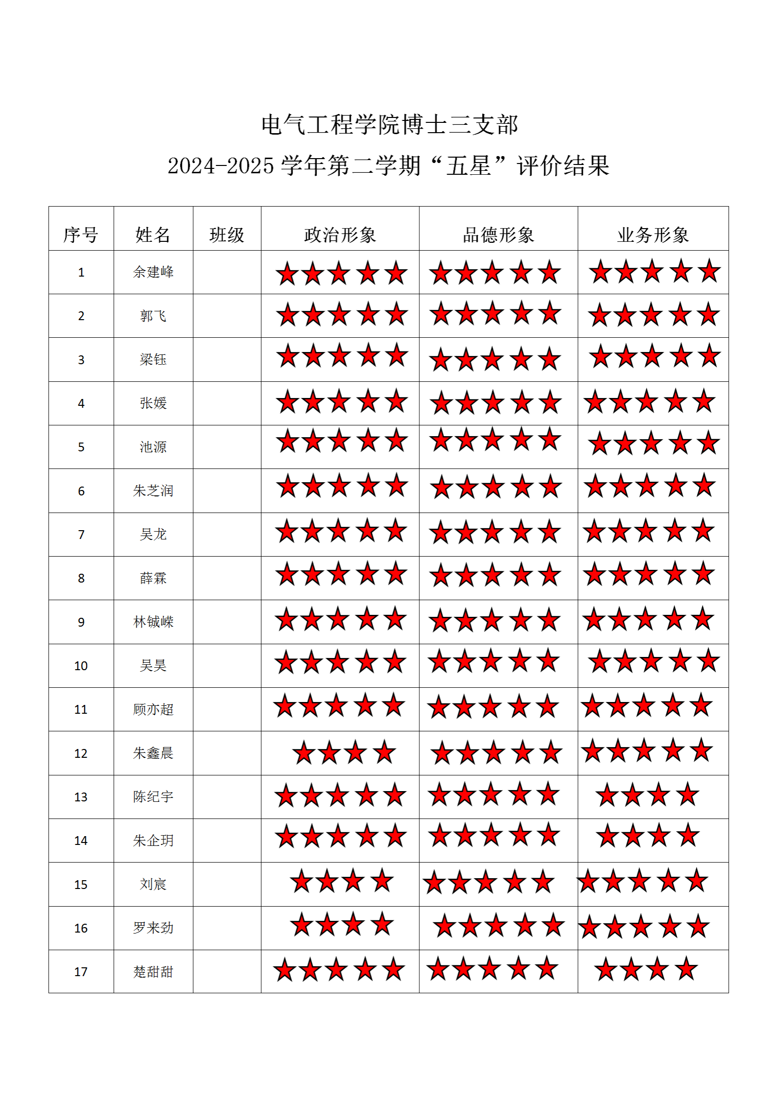 电气工程学院博士二支部 2024-2025学年第二学期“五星”评价结果